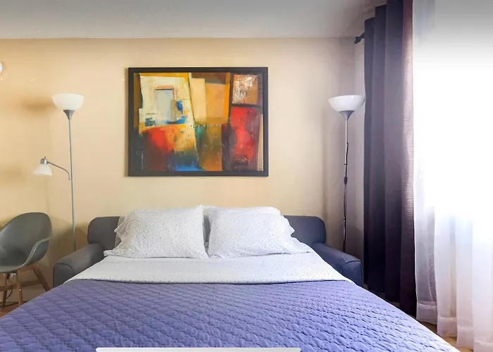 The centre of Edmonton can be reached within a 5-minute walk, and natural attractions like the municipal Louise McKinney Riverfront Park are approximately a 5-minute ride away. Standing only 400 metres from the Alberta Legislature Building, the River Valley Minimalist Bachelor Suite Edmonton is only 1.8 km from Victoria Park. The ICE District also lies about 10 minutes away by car. This Edmonton hotel is within reach of Ortona cable car station.